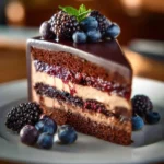 This Berry Midnight Velvet Slice – Indigo Temptation is a moist, dark velvet cake layered with creamy vanilla filling and a bright berry layer, finished with a shiny chocolate mirror glaze. It looks fancy but is friendly to make at home. If you like bold berry desserts, this is for you. You can also compare ideas with a similar blackberry velvet cake for extra inspiration.