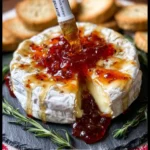 Serve Bloody Baked Brie warm right out of the oven. Pair it with sliced baguette, crackers, or fresh vegetables for dipping. It’s perfect for guests to share and enjoy. You can also place it on a charcuterie board for a festive touch.