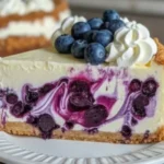 Blueberry Swirl Cheesecake with Silky Topping is a classic baked cheesecake that combines a buttery graham cracker crust, a rich and creamy vanilla cheesecake filling, and a vibrant homemade blueberry swirl. Finished with a smooth sour cream topping, this dessert is elegant, refreshing, and perfect for special occasions or everyday indulgence.