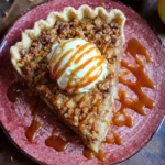 Serve the Caramel Apple Crumble Pie warm right out of the oven. Top each slice with a scoop of vanilla ice cream. The hot pie and cold ice cream create a delicious contrast that everyone loves. This pie is perfect for family gatherings, potlucks, or any celebration.