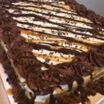 If you’re looking for a dessert that delivers maximum flavor with minimum effort, this Chocolate Caramel Cake is about to become your new favorite recipe. With a soft and moist chocolate base, a cloud-like whipped cream frosting, and gorgeous swirls of chocolate buttercream, this cake is guaranteed to impress at any party or celebration. The finishing touch—drizzles of chocolate and caramel—makes every slice look like it came straight from a professional bakery.