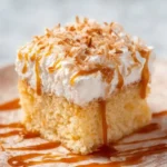 Coconut Caramel Poke Cake is a delicious and simple dessert that will impress your family and friends. It combines a soft yellow cake with a rich caramel sauce and a sprinkle of shredded coconut. This cake is perfect for any occasion, whether it’s a birthday, potluck, or just a sweet treat for yourself.