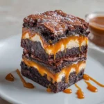 Layered caramel brownie dessert with rich chocolate and creamy caramel layers