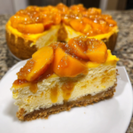 - Optionally, drizzle peach syrup from caramelized peaches over the cheesecake for extra flavor.