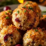 These Thanksgiving Stuffing Balls are small, flavorful bites made from bread crumbs, cranberries, sage, onion, and garlic. They bake until golden and make a cozy side dish or appetizer. If you enjoy little handheld holiday treats, you might also like this easy savory bite recipe: Bacon Jalapeño Popper Cheese Balls.